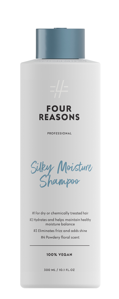Four Reasons Professional Silky Moisture Shampoo is a professional-quality product created from the best ingredients. It has a vegan formula and recyclable packaging.