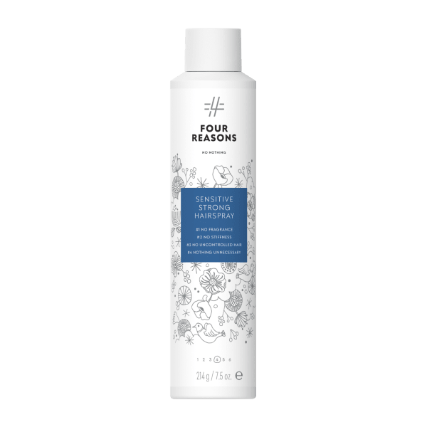 No Nothing Very Sensitive strong hold hairspray gives a strong and flexible hold to any style. A fine mist that dries fast, gives great shine and finishes the style. Contains UV and humidity protection. Strong Hairspray is hypoallergenic, fragrance-free, unscented, gluten free, soy free, paraben free. No perfume and no colorants. Suitable for sensitive skin and scalp.
