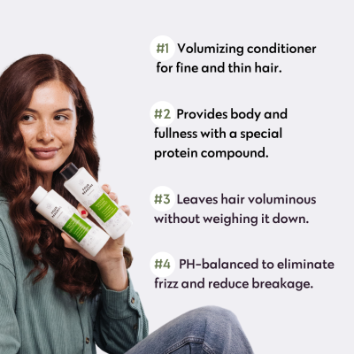 No Nothing Volume Conditioner provides body and fullness to fine hair with a special protein compound that leaves hair voluminous without weighing it down. Contains UV-protection and is color safe. Vegan and cruelty-free. Volume Conditioner is hypoallergenic, fragrance-free, unscented, gluten-free, soy-free, paraben-free, dye and colorant-free.